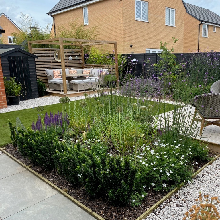 Shows how clever design and use of materials can give a great effect to a smaller garden. Soft contemporary feel to the space, balanced with the right type of planting for shape and structure.