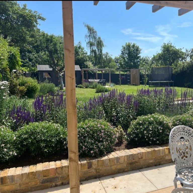 We extended and upgraded the patio around the house, softened with planting and added further paving at the end of the garden around the shed which was to be repurposed as a Summer House.