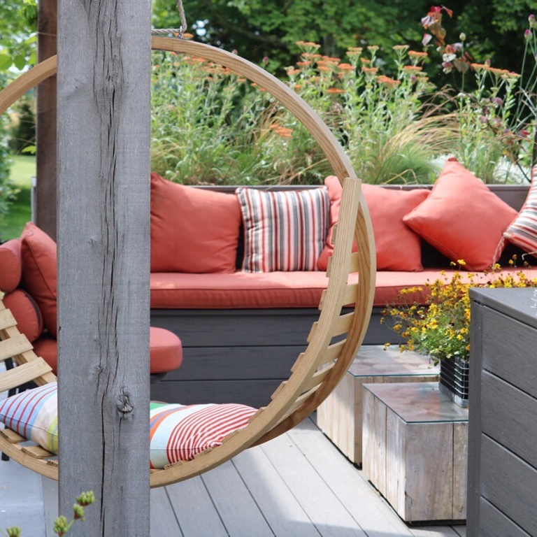 An enclosed seating space for spending time relaxing or with family and friends, added another dimension to the garden, the hanging seat, added a superb structure and interest to this section of the garden.